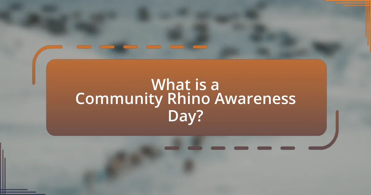 A Community Rhino Awareness Day is an event designed to educate the public about rhinoceros conservation and the threats they face, including poaching and habitat loss. The article outlines the importance of raising awareness, the current threats to rhinos, and how community involvement can enhance conservation efforts. It details the goals of organizing such an event, the necessary planning steps, and the types of activities and educational programs that can be included. Additionally, it emphasizes the role of local organizations, volunteers, and effective promotional strategies to maximize community engagement and support for rhino protection initiatives.